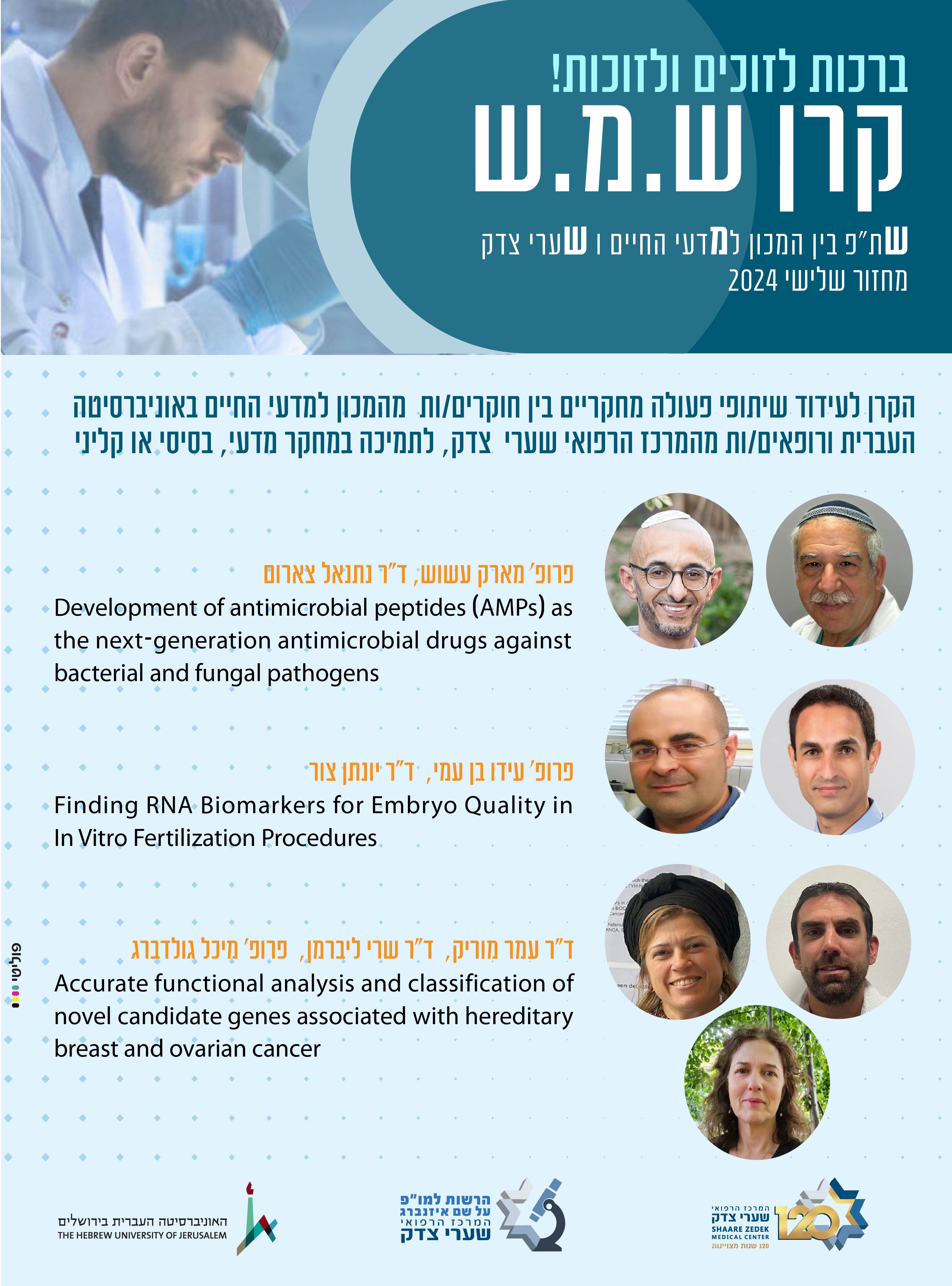 מטרת הקרן היא לעודד שיתופי פעולה מחקריים בין רופאים/ות משערי צדק וחוקרים/ות מהמכון למדעי החיים ע"י מימון מחקר מדעי בסיסי או קליני. גובה המענק עד 40,000 ₪ לשנה, לשנתיים, וההגשה מתבצעת ע"י רופא/ה משערי צדק יחד עם חוקר/ת מהמכון.